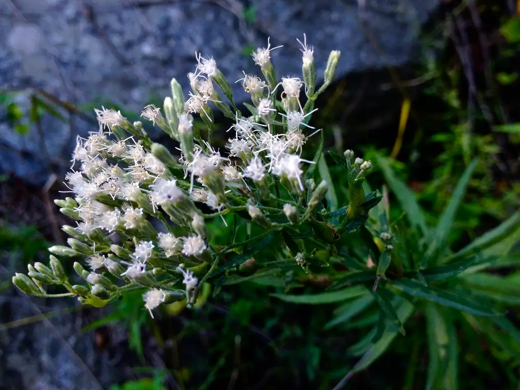 Hyssop-leaved thoroughwort is a herbaceous perennial in the aster family and native to the eastern and central United States. It is native to dry, sandy or gravelly woods, fields, salt meadows and disturbed areas.